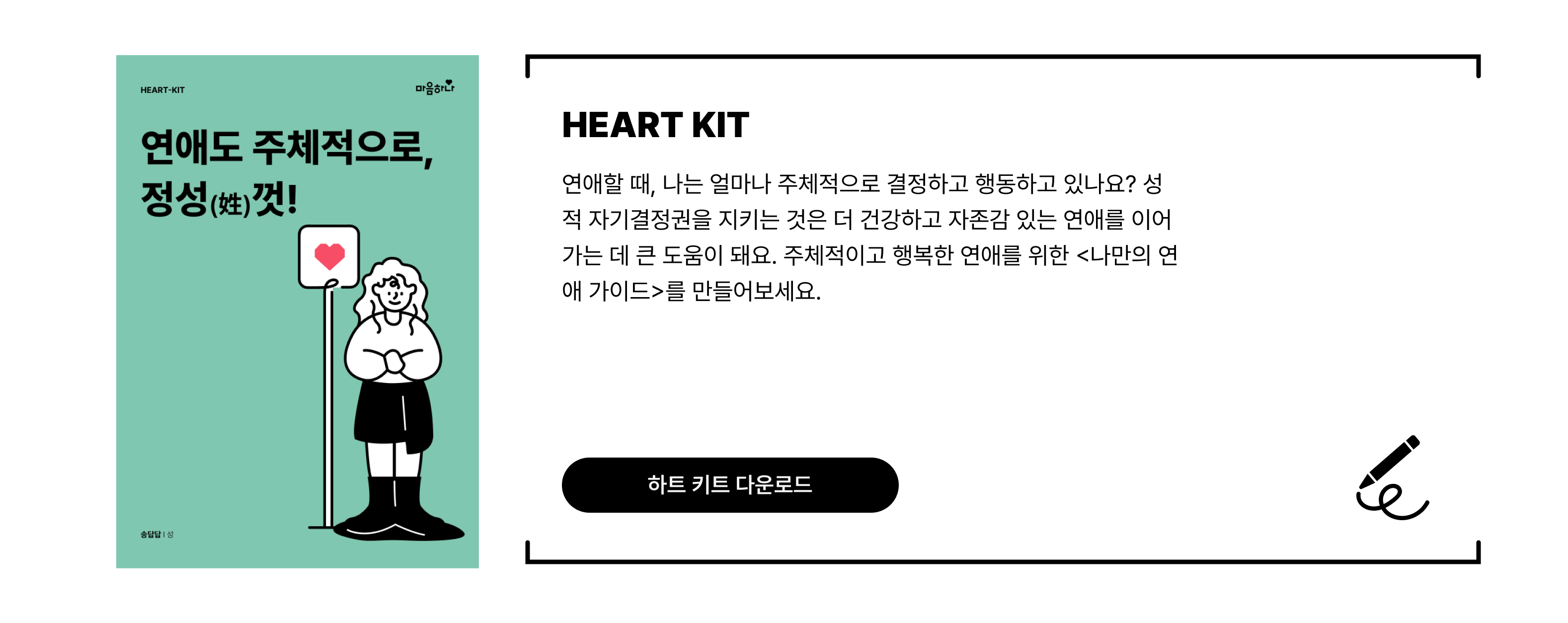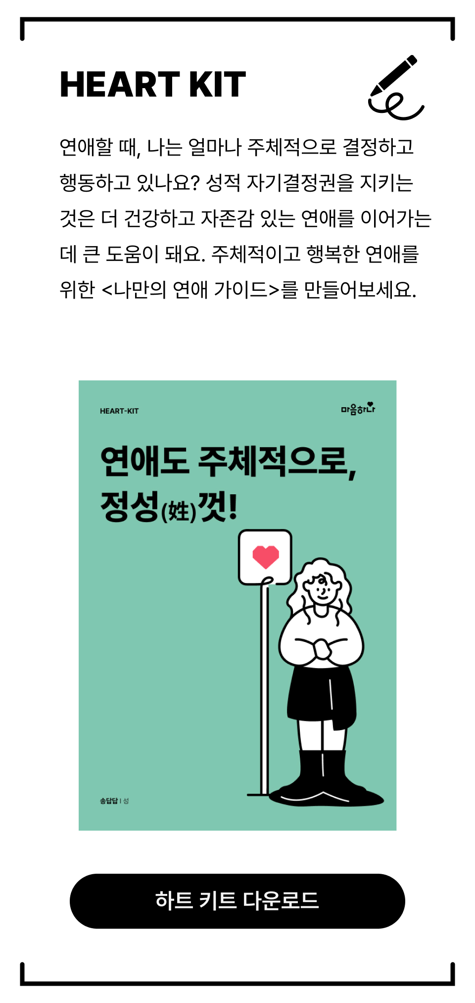 오늘 나눈 이야기를 더욱 단단하게 이해하고, 실천까지 해볼 수 있도록 '하트키트(HEART-KIT)'를 준비해뒀어요. 꼭 다운로드 받아서 함께 하길 바랄게요!